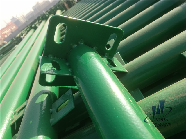 浸塑護(hù)欄網(wǎng)工藝:護(hù)欄網(wǎng)通常使用的防腐方式為粉末浸塑法,它起源于流化床法,所謂的流化床最初是在溫克勒氣體發(fā)生爐上應(yīng)用于石油接觸分解,進(jìn)而開(kāi)發(fā)了固氣兩相接觸工藝,后逐漸用于金屬涂塑方面。所以有時(shí)仍叫“流化床包覆法”,實(shí)際過(guò)程是把粉末涂料加入底部多孔透氣的容器(流動(dòng)槽)中,由鼓風(fēng)機(jī)從下送入經(jīng)過(guò)處理的壓縮空氣,使粉末涂料翻動(dòng)達(dá)到“流化狀態(tài)”,成為均勻分布的細(xì)散粉末。浸塑護(hù)欄網(wǎng)的浸塑工藝由兩個(gè)階段來(lái)完成:第一階段為固定床階段,第二階段為氣流輸送階段,在固定床的基礎(chǔ)上繼續(xù)增大流速(W),床層開(kāi)始膨脹和松動(dòng),床層高度開(kāi)始增加,每個(gè)粉末顆粒被浮起,因而離開(kāi)原來(lái)位置作一定程度的移動(dòng),這時(shí)便進(jìn)入流化床階段。bc段說(shuō)明流化床內(nèi)粉層膨脹,其高度(I)隨著氣體速度的增大而增加,但床內(nèi)壓強(qiáng)(△P)并不增大,在一定范圍內(nèi)變動(dòng)流速而不影響流體所需的單位功率,這是流化床的特征,正是利用這一特點(diǎn)來(lái)進(jìn)行涂裝工藝實(shí)施的。流化床內(nèi)粉末流化狀態(tài)的均勻性是保證涂膜均勻的關(guān)鍵,浸塑時(shí)間越長(zhǎng)、涂層越厚。涂層厚度可達(dá)0.8-1.0mm。