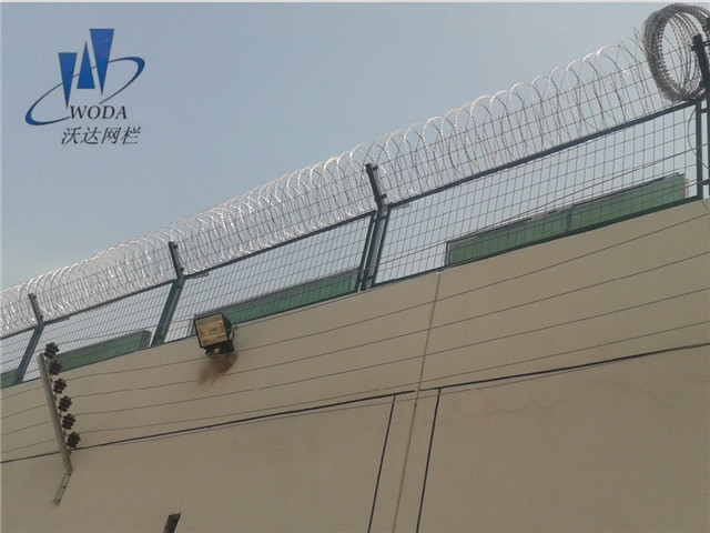 圍墻刀刺網圍欄由熱鍍鋅鋼板或不銹鋼薄板沖壓出尖銳的刀片狀,高張力鍍鋅鋼絲或者不銹鋼絲做芯線組合而成的阻絕器材。由于刺網造形獨特不易觸摸,因而能達到極好的防護隔離效果。